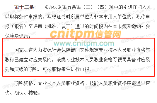 因为该文件规定国家、省人力资源社会保障部门文件规定专业技术人员职业资格与职称已建立对应关系的,该类专业技术人员职业资格可视同具备对应系列和层级的职称,可按职称条件进行申报。