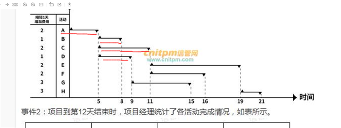 如果问工期,那就是21天,图上21天的时候结束了所有的活动