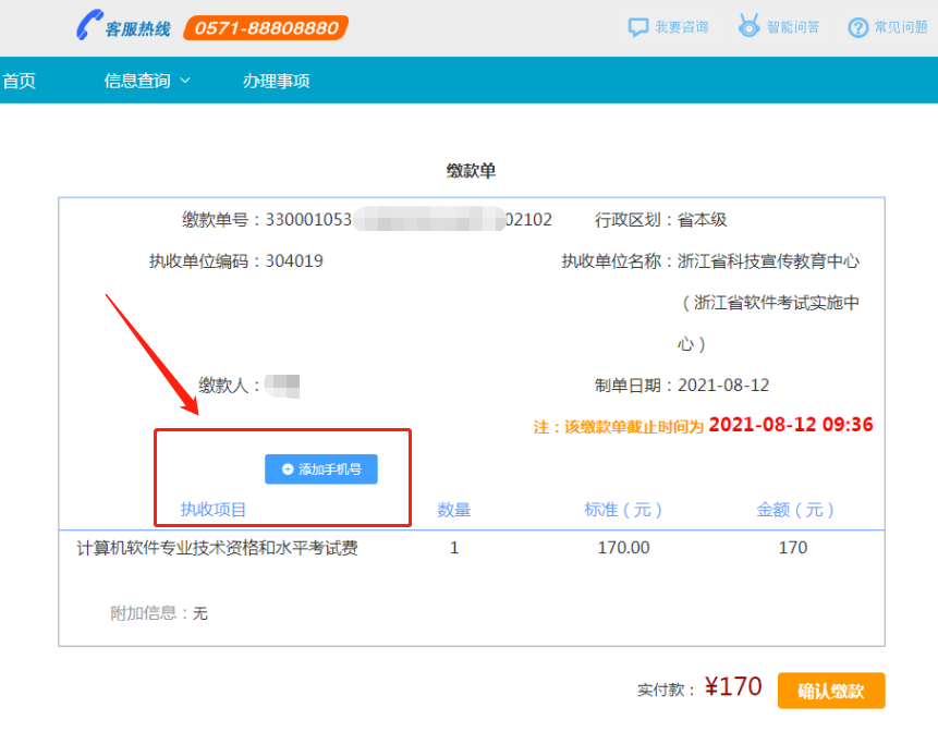 如果缴费时在缴款单界面添加过个人手机号码,缴费成功后公共支付平台也会将电子发票以短信形式发送给个人。