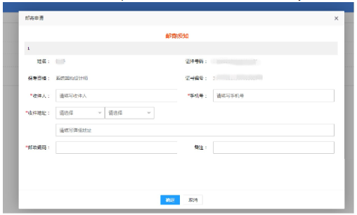 (3)根据提示填写真实有效的个人邮寄信息。邮寄信息一旦提交,无法撤回、更正,请务必准确、详细填写。如因个人邮寄信息填写不全或者有误,导致证书邮寄有误或丢失等的后果自负。