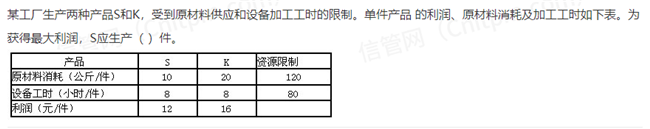 S+K总共不超过10件,K的利润大,所以优先生产K , 所以S要生产的越少越好,所以答案就是A B中选