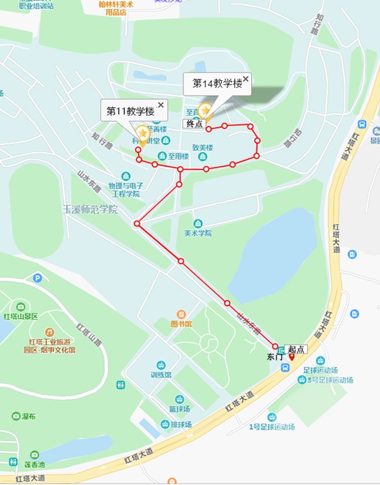 附件1:玉溪师范学院考点2022年下半年全国计算机技术与软件专业技术资格(水平)考试考生进校考试及离校路线图