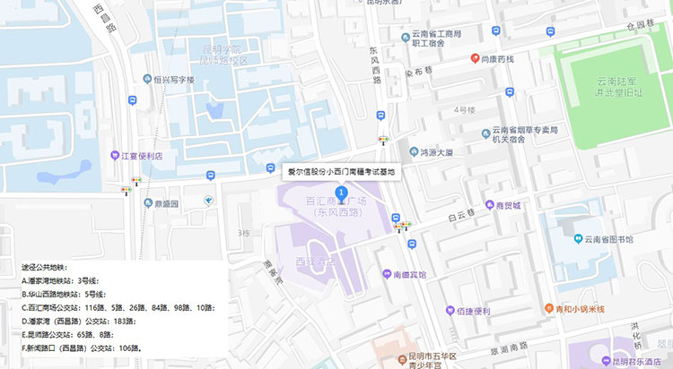 爱尔信教育股份小西门南疆考试基地考点位置示意图