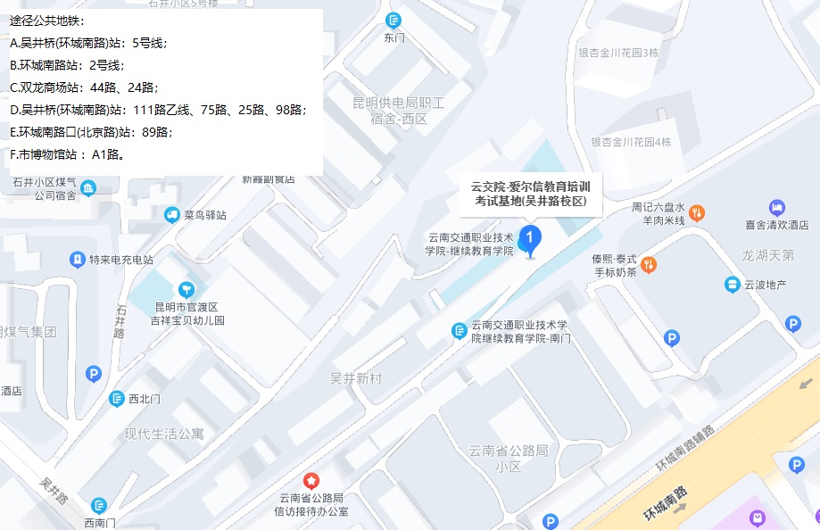 爱尔信教育股份吴井路考试基地考点位置示意图