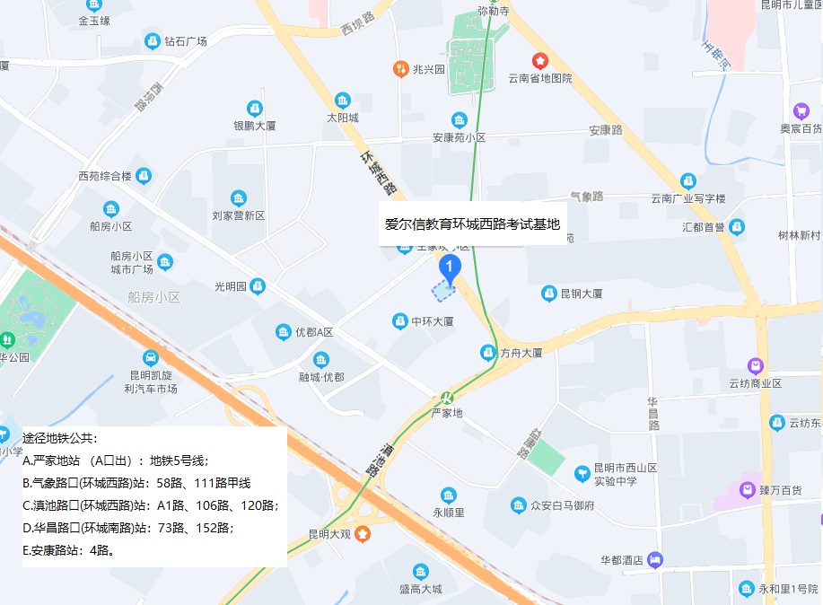 爱尔信教育股份环城西路考试基地考点位置示意图