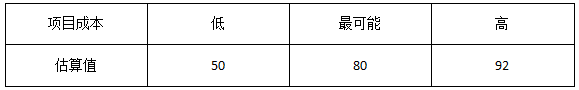 66、某项目成本估算区间如图所示(单位:万元),则在84 万元内完成项目的可能性为:()。