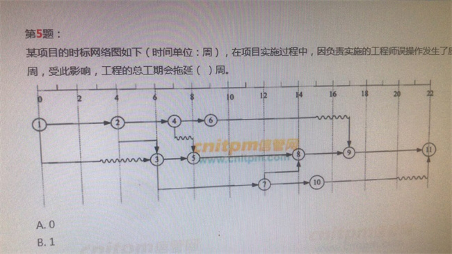 软题库解析:本题计划的网络图中关键路径长度22周,“工作4-6”不在关键路径上。在项目实施过程中,“工作4-6”拖后3周后,此时它用掉“工作6-9”2周的自由时差,还会引起整个项目工期1周的延期,此时关键路径的长度为了23周。