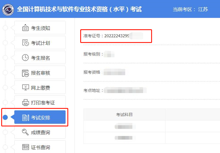 “准考证号”获取路径:登录报名系统,点击左侧菜单栏中的“考试安排”即可查询“准考证号”。