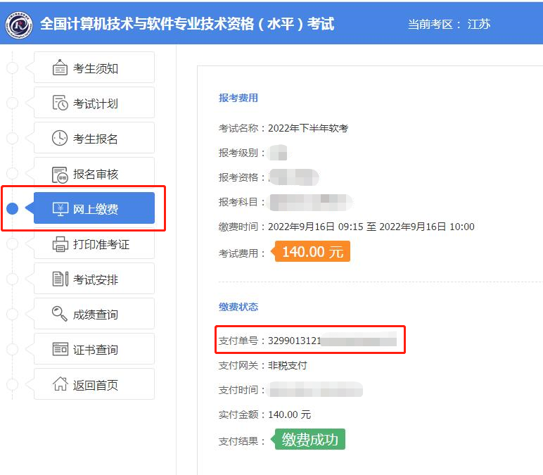 2022年下半年计算机专业技术资格考试报名费申请退费“缴费支付单号”和“准考证号”获取路径