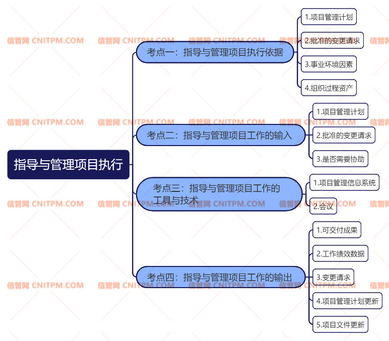 指导与管理项目执行是信息系统项目管理师十大管理中项目整体管理的知识内容,位于信息系统项目管理师教程(第3版)的第4章【点这里购买正版教程】,在近3年的考试中出现过两次,分别是在2022年上半年与2021年上半年,出题内容主要涉及“指导与管理项目执行依据”、“指导与管理项目工作的输入”、“指导与管理项目的工作与技术”以及“指导与管理项目工作的输出”。从考情来看,出现的频率不高,同时出题多以概念性内容为主,虽然可能会考到的内容比较多,但是整体难度不大,考生只需要熟悉其中概念即可。