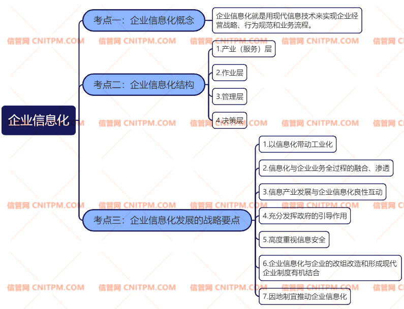 企业信息化是系统集成项目管理工程师信息化知识中的考点内容,位于系统集成项目管理工程师教程中(第2版)的第1章中【点这里购买官方正版教程】。在近3年的考试中出现过两次,分别是2022年上半年和2021年下半年,出题频率适中,考试内容主要涉及“企业信息化概念”、“企业信息化结构”以及“企业信息化发展的战略要点”几个方面,而“结构与战略要点”属于重点考察方向。不过从考试出题来看,难度真题不大,主要对相关概念的熟悉程度,出题程度不深,考生在备考时除了看书之外,可以多练习相关题目加深印象即可。整体评价:频率适中、难度不大。