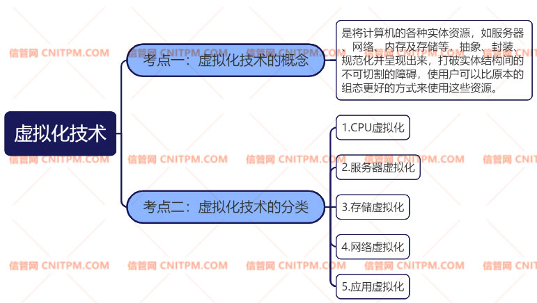 虚拟化技术是系统集成项目管理工程师信息化知识中的考点内容,位于系统集成项目管理工程师教程中(第2版)的第1章中【点这里购买官方正版教程】。在近3年的考试中有考到过两回,分别是2022年上半年和2020年下半年,考试内容主要涉及“虚拟化技术的概念”和“虚拟化技术的分类”两个部分,考试题目为概念性题,整体难度不大,考生掌握即可。