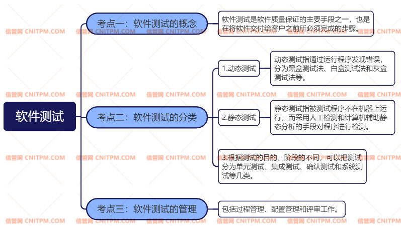 软件测试是系统集成项目管理工程师信息化知识中的考点内容,位于系统集成项目管理工程师教程中(第2版)的第3章中【点这里购买官方正版教程】。在近三年的考试中,该考点在2021年下半年和2021年上半年出现过两次,考试内容主要围绕“软件测试的概念”“软件测试的分类”以及“软件测试的管理”几个方面进行出题,考察考生对相关概念的熟悉程度,题目难度不大。