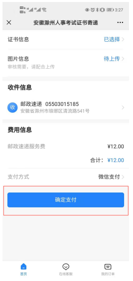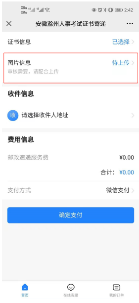 2、邮寄服务办理流程:扫描中国邮政邮寄业务二维码—填写考生信息—核对考生证书信息—上传考生本人手持身份证照片—填写收件地址—系统自动计费—线上支付—邮寄送达。