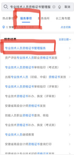 第三步:搜索服务事项“专业技术人员资格证书管理服务”。