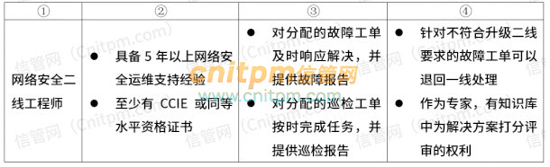 44、下表是A公司网络安全二线工程师的岗位要求说明,其中表头名称选择合理的为()。