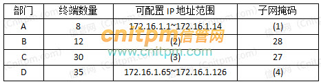 该企业办公网络采用172.16.1.0/25地址段,部门终端数量如表1-1所示,请将网络地址规划补充完整。