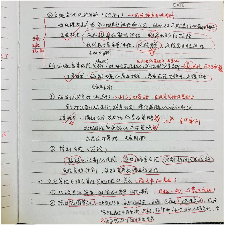 在实际的论文考试过程中,大部分都是用的我准备的内容,然后根据考试内容重点回应了子题目,多处回应。如这次风险管理的登记册,在识别风险形成风险登记册后的每个过程结尾处都回应了更新和完善风险登记册。我的论文写了三千字不到点,一气呵成,最后还多了20分钟。