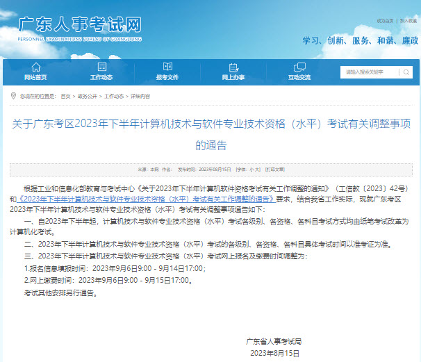 关于广东考区2023年下半年计算机技术与软件专业技术资格(水平)考试有关调整事项的通告