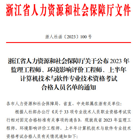 浙江2023年上半年信息系统项目管理师合格人员名单