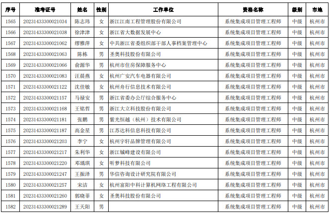 浙江2023年上半年系统集成项目管理工程师合格人员名单