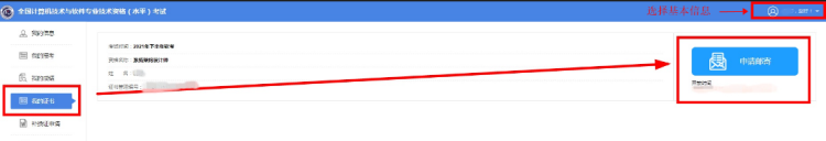 2.点击网站右上角个人中心,进入“基本信息”界面,点击“我的证书”,选择“申请邮寄”。申请提交后可登陆系统查看邮寄情况。