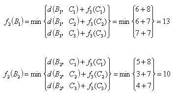 前面我们已经算出C1,C2,C3到终点E的最短距离f3(C1),f3(C2), f3(C3)。