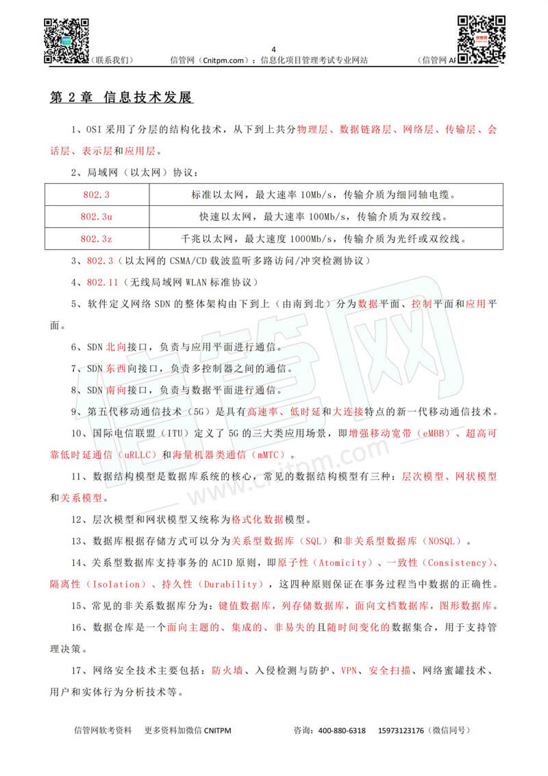 以下为JRS直播整理的信息系统项目管理师教程第四版考点默写本(普通版)《第2章-信息技术发展》的参考答案,供广大考生查看:
