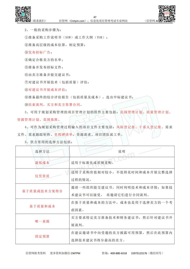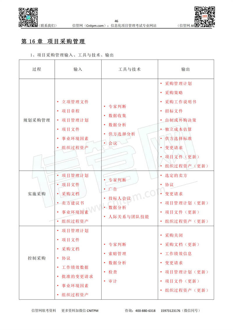 以下为JRS直播整理的信息系统项目管理师教程第四版考点默写本(普通版)《第16章-项目采购管理》的参考答案,供广大考生查看: