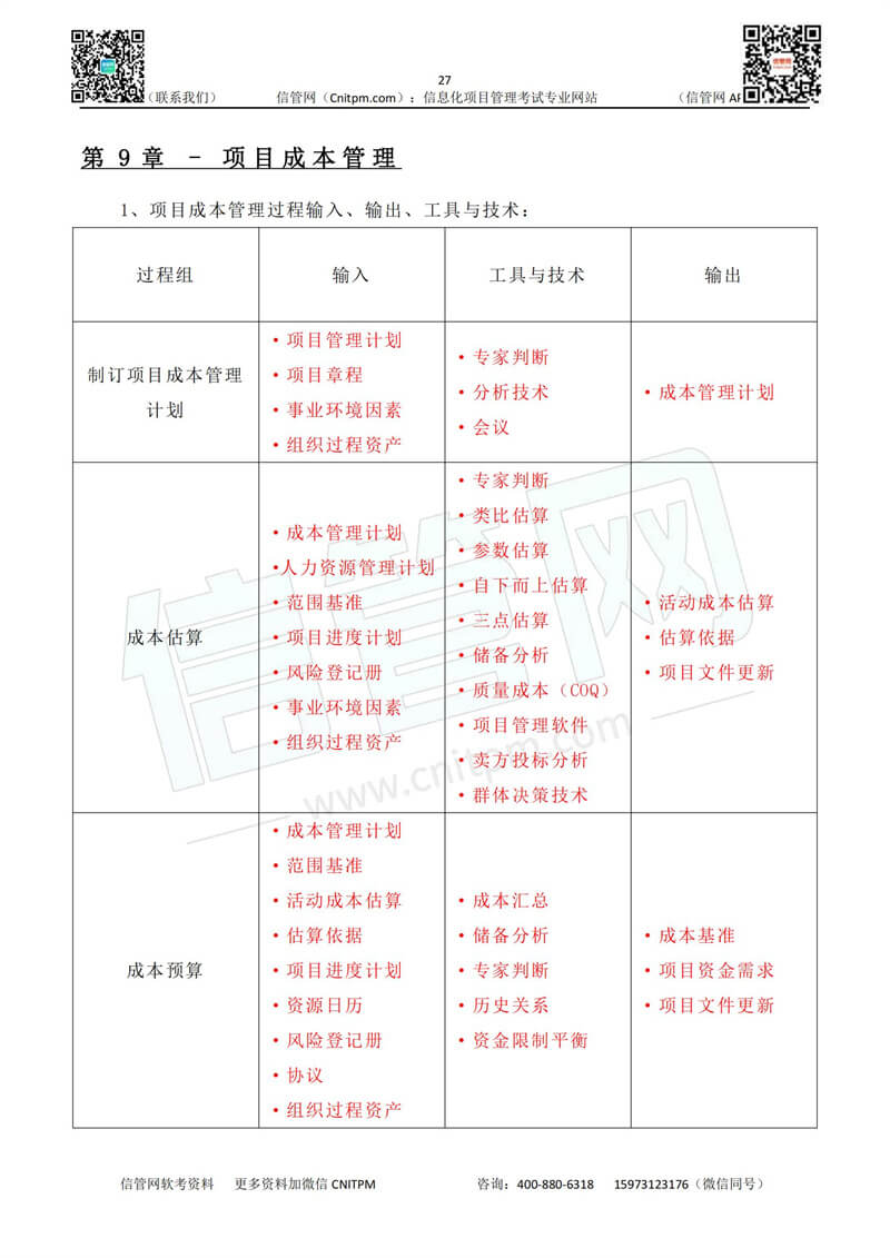 以下是由JRS直播整理的系统集成项目管理工程师考点默写本(普通版)《第9章-项目成本管理》的参考答案,供广大考生进行查看: