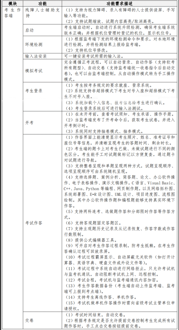 其它一些软考机考系统功能之类的,本文就不一一给大家进行解读说明了,大家可以去看一下原文件——《工业和信息化部教育与考试中心计算机软件资格考试、通信职业水平考试、部属单位公开招聘考试技术服务及运维与技术保障项目采购中标公告》。
