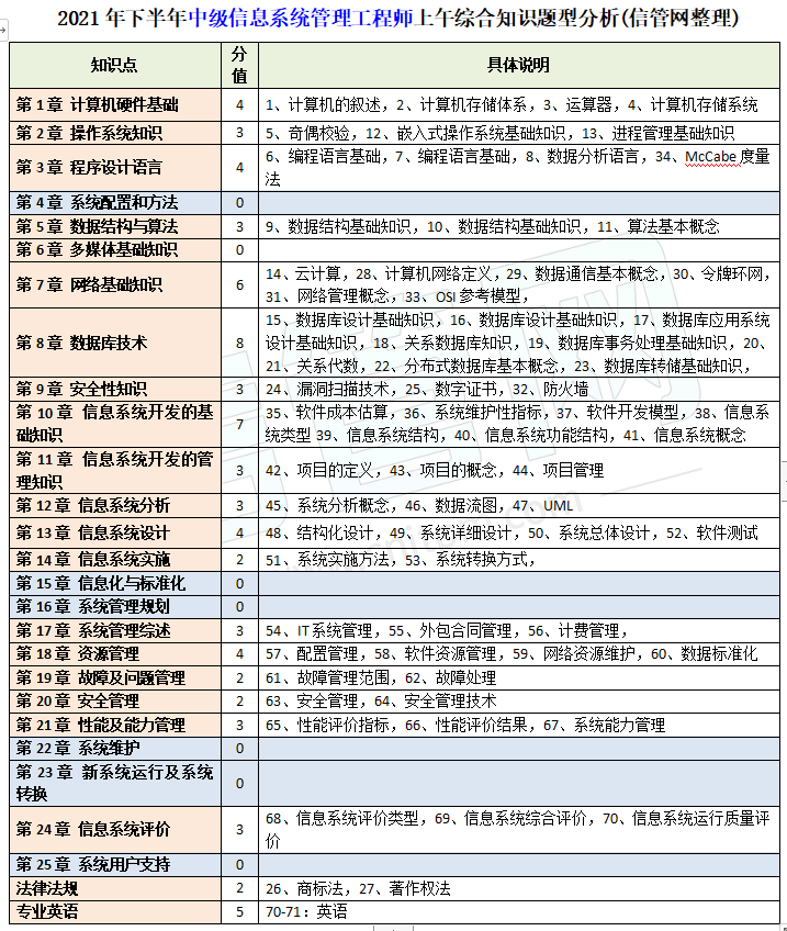 以下为2021年下半年中级信息系统管理工程师综合知识题型分析