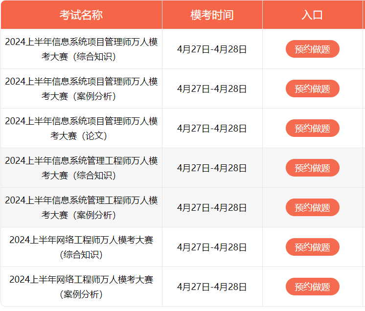 4、2024上半年暂只开放信息系统项目管理师、信息系统管理工程师、网络工程师模考。