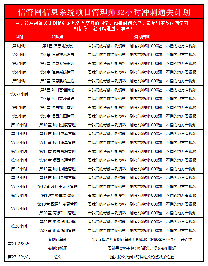 给自己定一个目标,冲刺32小时通过2024年上半年信息系统项目管理师!