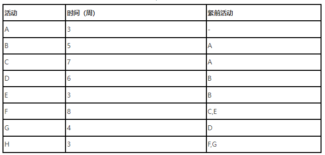 某项目包含ABCDEFGH共8个活动,各活动的历时、活动逻辑关系如下表所示: