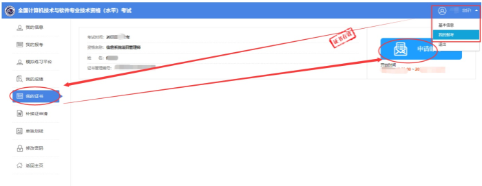 (2)点击网站右上角的个人中心,进入“我的报考”界面,点击左侧“我的证书”——点击“申请邮寄”。