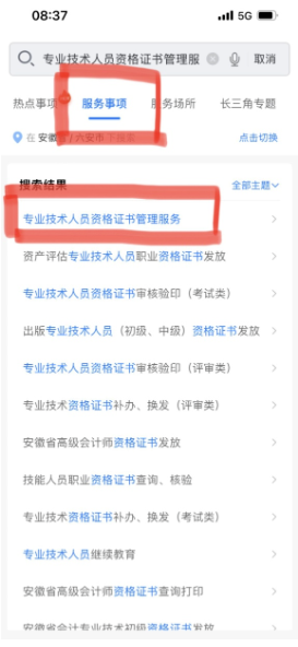 搜索服务事项 “专业技术人员资格证书管理服务”。