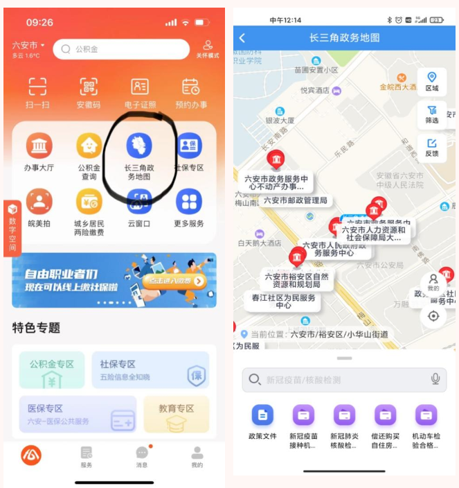 点击长三角政务地图,全市政务服务事项/网点随心查: