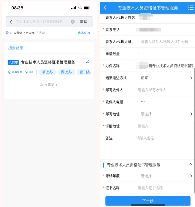 点击“掌上办”,送达方式选择“邮寄”,填写收件地址、收件人、联系电话。