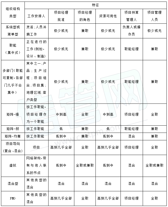 系统集成项目管理工程师高频考点:组织结构类型的特征