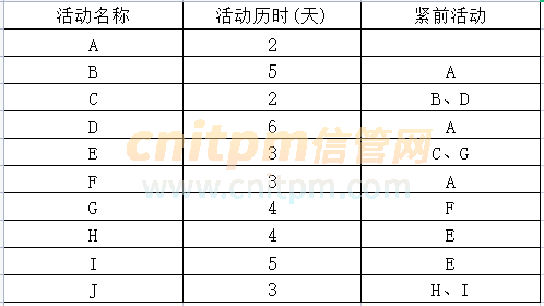 某信息系统项目包含如下活动。各活动的历时,活动逻辑关系如下表所示: