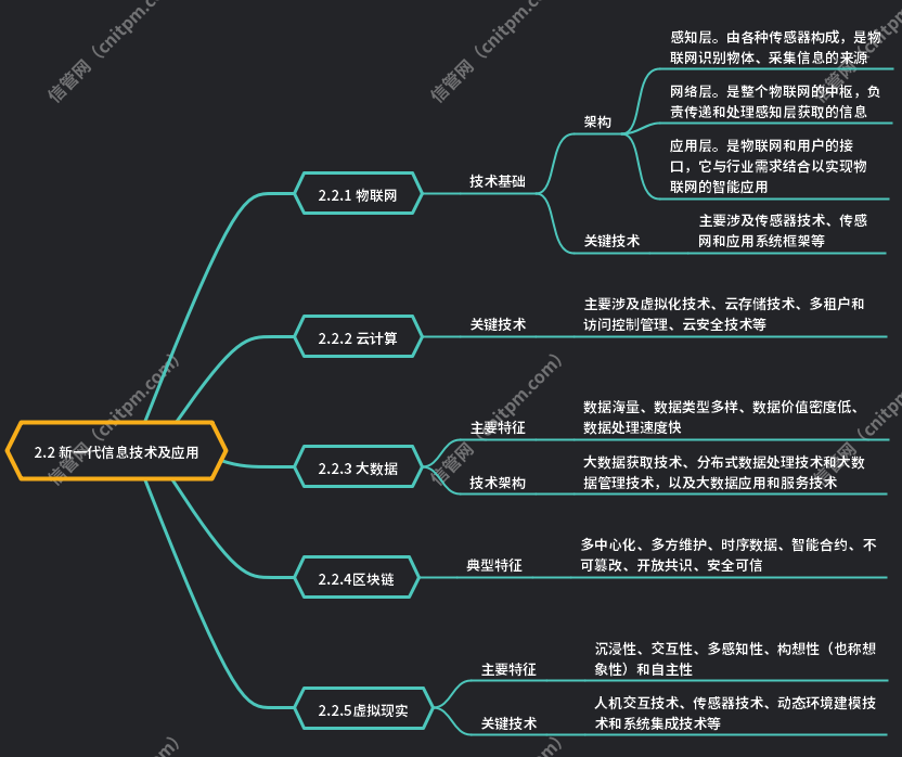 2025年信息系统项目管理师章节考点思维导图:2.2 新一代信息技术及应用