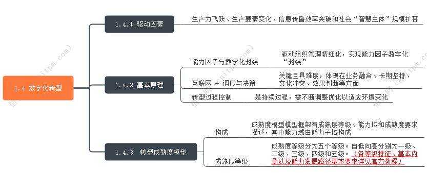 2025年信息系统管理工程师章节考点思维导图:1.4 数字化转型