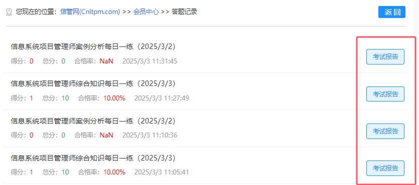 如果各位考生想在后续再次查阅和了解此次作答结果和答题分析,你只需登录 “会员后台”,找到对应的答题记录,点击 "考试报告" 即可。