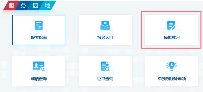 模拟系统入口:登录中国计算机技术职业资格网→在服务园地点击 “模拟练习”→进入机考模拟系统。