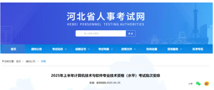 现将2025年上半年计算机软件资格考试河北考区有关安排公布如下: