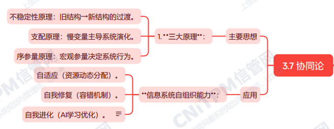 系统规划与管理师第2版教程第第三章系统科学与哲学方法论第七节协同论考点涉及:协同论主要思想、协同论的应用等,具体思维导图整理如下: