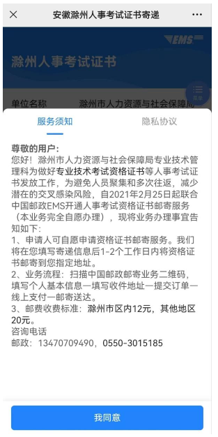领取地点:滁州市行政服务一楼大厅公共服务区E06号邮政速递窗口