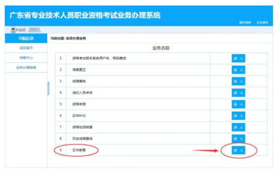 线下邮寄:考生可在任意时间通过广东省专业技术人员职业资格考试业务办理系统(http://123.56.228.71:82/)在线申请证书邮寄业务。(见下图,需用电脑操作)