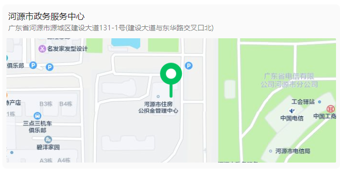 地址:河源市源城区东埔街道建设大道131-1号(建设大道与东华路北交汇处)河源市政务服务中心一楼11号窗口